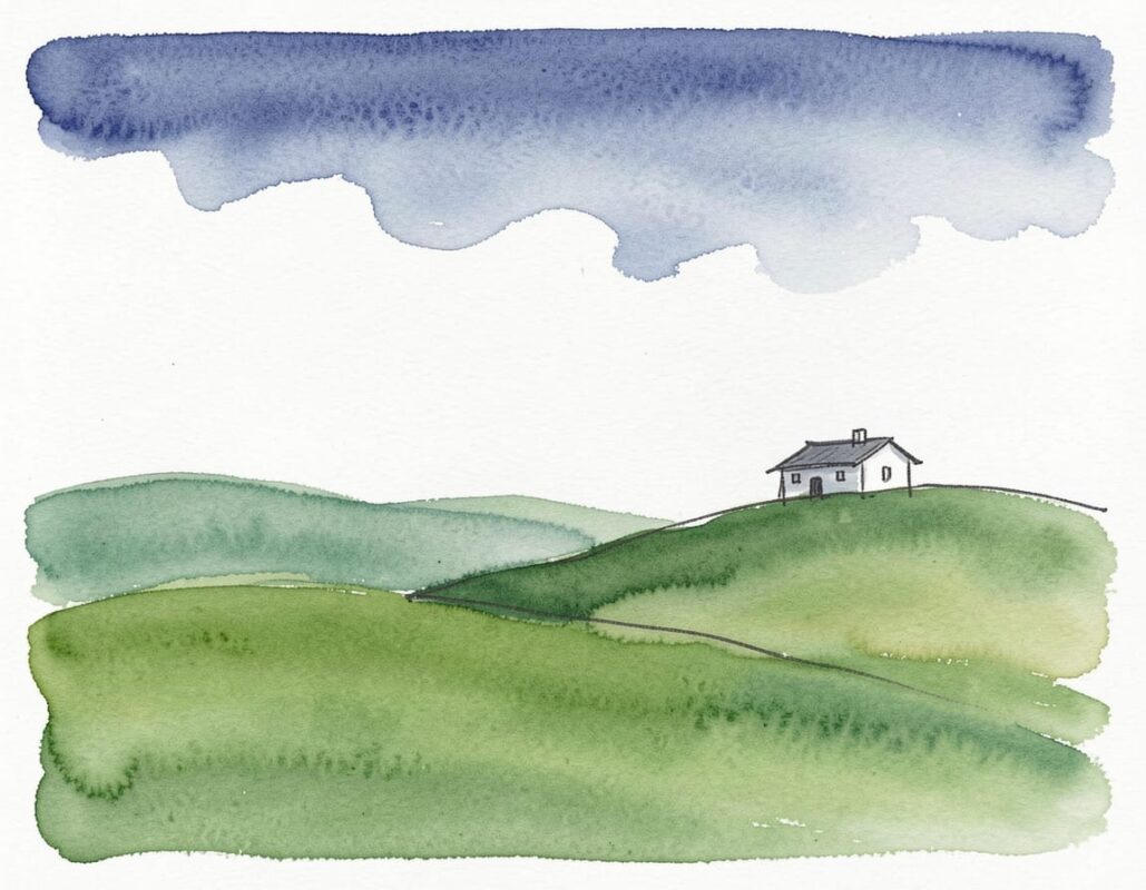 Tym razem zadanie brzmiało: Mały domek na polu. Farby wodne, czyli akwarela… 🙂